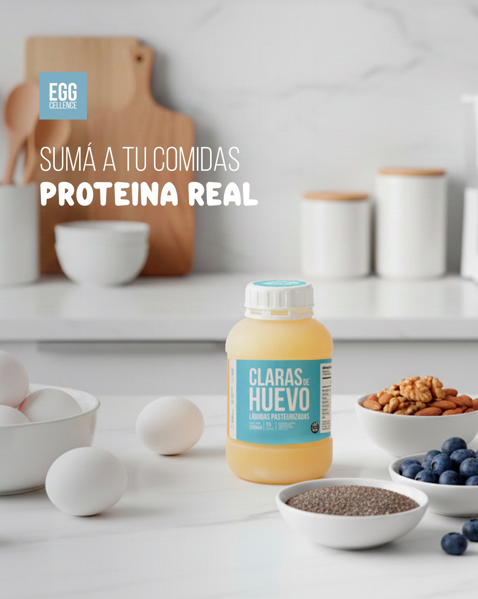 Eggcellence es 100% clara de huevo liquida pasteurizada envasada para el consumo en el hogar. Sin conservantes, ni agregados. Es fácil de usar y almacenar. Permite que consumas sólo lo que necesitas evitando el desperdicio de las yemas y cocinando de manera más saludable.